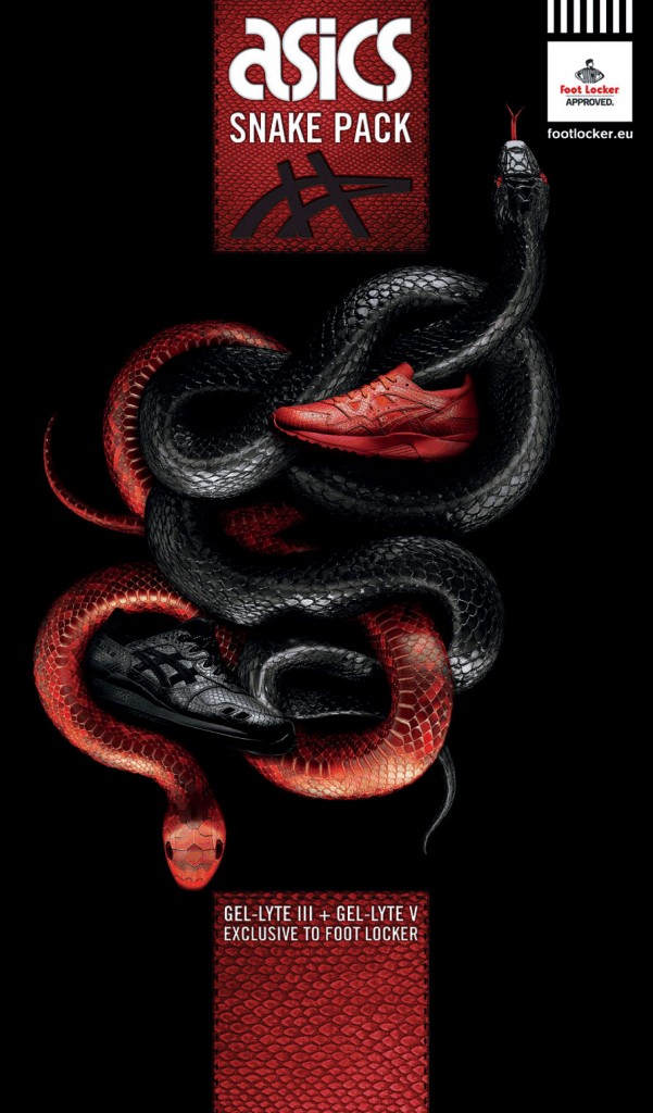 Asics présente son Snake Pack en exclusivité chez Foot Locker. Le pack se compose des emblématiques Gel-Lyte III et Gel-Lyte V disposant d’une texture « peau de serpent » du plus bel effet.