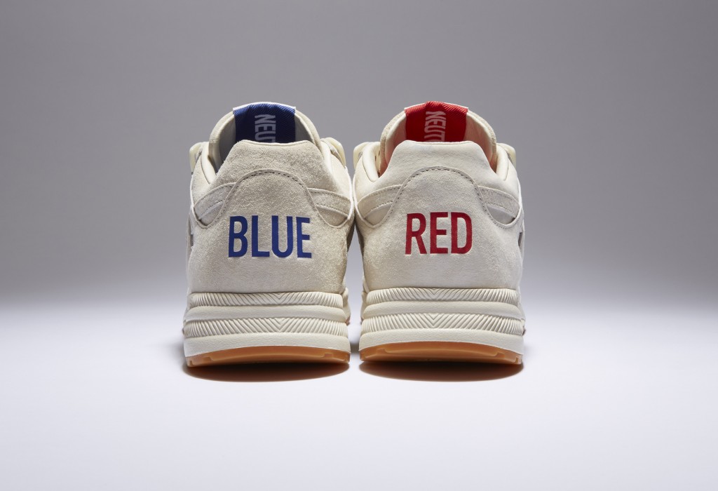 Inspirée par la vie de l’artiste Californien, la Ventilator x Kendrick Lamar est un subtile mélange de matières aux nuances beiges pimentées de rouge et de bleu. Le modèle dispose d’une tige ton sur ton écrue, composée de cuir nubuck de qualité avec des détails en perforation et des doubles en cuir. Des touches discrètes de bleu et rouge sur les semelle intérieures sont également cousues sur les languettes embossées aux talons et intégrées aux lacets ronds.