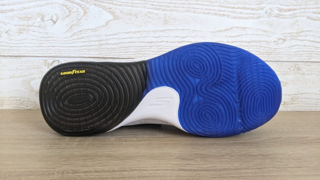 Le grip estampillé GoodYear est un atout qui fait ses preuves avec de bons résultats. La chaussure reste un peu trop lourde avec cette semelle omniprésente et plutôt rigide. On sent que c’est une chaussure qui conviendra davantage aux intérieurs. Elle manque en effet de souplesse pour les changements de direction mais aussi lors des sauts.